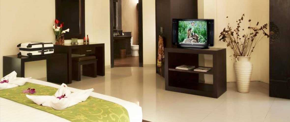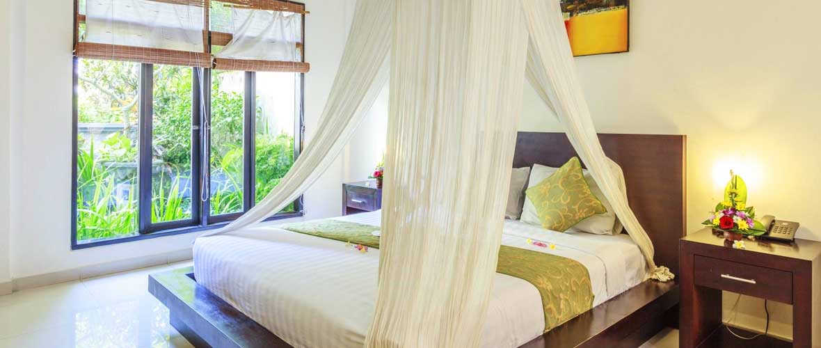 One-Bedroom Villa with Garden View at Bali Ayu Hotel & Villas offers a spacious bedroom with 32 square meter in size and consists of one king size bed or two twin bed base on guest preference, acccomodate 2 adult plus 1 chidlren and a terrace with garden view. This villa has a private bathroom with shower and bathub facilities, safe and free WiFi!